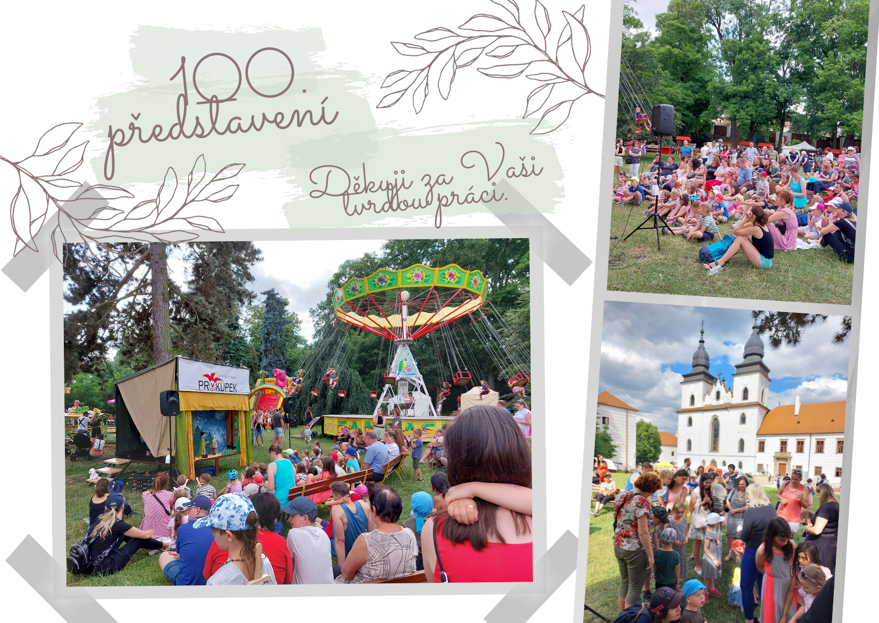 To 100. představení bylo odehráno jako výjezdní na Prokopské slavnosti v nádherné Třebíči 1.7.2023 od 14. hodin s pohádkou "O mlsném drakovi". Jelikož to byla venkovní akce za krásného počasí v areálu zámku, počet diváků jen těžko odhadnout.